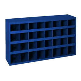 Ascot 719-00032 Metal Storage Cabinet with 32 Bins keeps your tools and accessories organized and accessible. Heavy-Duty, welded steel construction provides strength and stability. Hemmed bin fronts for retaining parts. Mounting holes located in the top and bottom. Ships fully assembled and ready to use.
