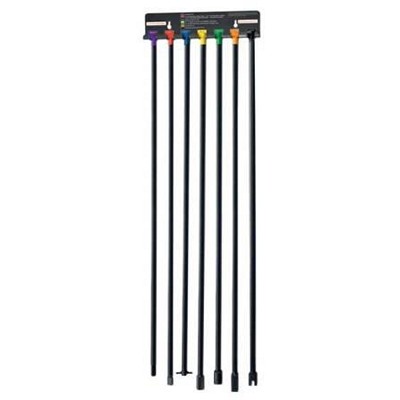 Spare Tire Tool Kit allows anyone to quickly remove difficult to reach spare tires. No more digging through your client's vehicle to locate the spare tire removal kit. Color-coded wall bracket allows user to quickly identify the correct removal tool to do the job. Applications include many trucks and SUV's where spare tire is located under the vehicle. Kit includes 7 bars and holding bracket. Ascot Part #319-96090.