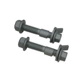 Specialty EZ Cam™ XR - Camber Kits for Domestic / Import Two Bolt Struts (for replacement of 14mm bolts). Designed for non-slotted struts, these kits allow both positive and negative camber changes up to approximately 1-3/4° (depending on the vehicle) by replacing the upper OE strut / spindle bolt. This easy-to-use adjuster provides built-in adjustment over the life of a vehicle just by rotating the head of the bolt. Packaged 2 bolts per box. Ascot Part #223-81260.