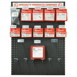 Specialty 88260 Passenger Car Assortment Board includes the most popular shims and cam kits for passenger vehicles. This is a "must have" for any shop performing 4 wheel alignments on cars, mini vans, and SUVs. Includes display board along with extra hooks and labels so you can add your own "Most used" SPC Alignment Parts and Tools.