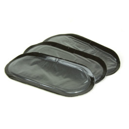 Xtra Seal 1-7/8" x 3-3/4" Medium Oval Feather Edge Tube Repair will vulcanize chemically. These repairs are black with black vulcanizing gum on a white poly backing. Packaged 20 repairs per box. Ascot Part #541-11005.