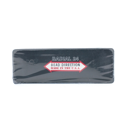 Xtra Seal 3" x 8-1/2" Radial 24 (2 Ply) USA Style C-O-I Repair is black with gray vulcanizing gum on a blue poly backing. Each reinforcing ply is individually end-wrapped to deflect tire flexing stresses in a unique manner. The new tie-gum construction eliminates the potential for delamination common in competitive brands. The face stock used will vulcanize chemically or in low temperature (precure) systems when applied with vulcanizing cement. Packaged 10 per box. Ascot Part #571-11824.