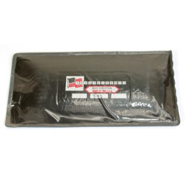 Xtra Seal 5" x 10" Radial 42 (4 Ply) USA Style C-O-I Repair is black with gray vulcanizing gum on a blue poly backing. Each reinforcing ply is individually end-wrapped to deflect tire flexing stresses in a unique manner. The new tie-gum construction eliminates the potential for delamination common in competitive brands. The face stock used will vulcanize chemically or in low temperature (precure) systems when applied with vulcanizing cement. Packaged 10 per box. Ascot Part #571-11842.