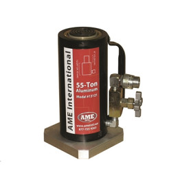 AME 13121 55-Ton Pro Series Jack features a lightweight aluminum lifting cylinder for easy handling and placing under the vehicle. Includes "Shut-Off Valve" which allows the pump to be removed while the ram is extended. Aluminum base plate included on 55 Ton models. Recessed base plate allows jacks to nest inside. Low profile saddle ensures precise lifting.