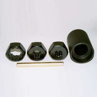 Exten Heavy Duty Drive-On Rib-Grip Lug-Off Kit for removing damaged inner cap nuts, 3/4" and 4/8" lug studs. Consists of 1 drive-on tool and 3 rib nut. Ascot Part #499-10660.