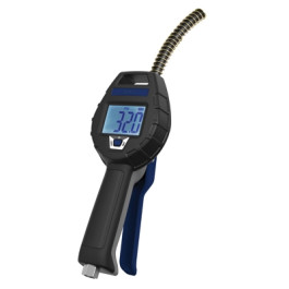RPG Digital Tire Inflator Gauge 0-175 PSI is accurate to +/- 1.2 PSI up to 59 PSI, +/- 2.3 PSI from 59-145 PSI, and +/- 3.6 PSI more than 145 PSI. Features 3 functions in one: inflate, deflate and measure tire pressure. Comes with a clip-on chuck with swivel hose to prevent kinking. Covered with rubber sleeve for extra comfort and durability. One button operation. Long-life battery with low battery warning signal (and extra battery included). Hose is 19.7" long.