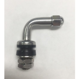 Haltec TV-6050 High Performance Einky Valve with a 90 degree bend angle and effective length of 1-3/16". Valve Hole .453. Installs from the outside (with rubber washer and nut on the inside).