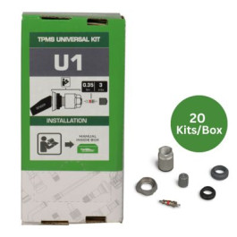 Alligator U-1 Universal TPMS Service Kit for Metal Valve Stems ensures you choose the correct components corresponding to your specific TPMS sensor. Works on 97% of the metal valve stem TPMS sensors in the market. Each kit includes a valve core, valve nut, valve cap, large grey seal, metal washer and small black seal. Per instructions, replace all valid spare parts in each kit. Unused parts can be discarded. Packaged 20 kits per box.
