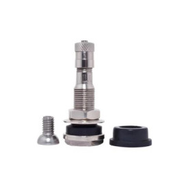 The Dill DV416-WS is a heavy-duty clamp-in valve stem assembly for the Ford truck and trailer TPMS systems using a .453" rim hole. The OEM-grade valve includes the mounting screw and grommet hardware.