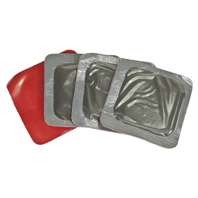 Xtra Seal 2-1/8" Medium with Red Poly Square Universal Repairs (Bulk 200 patches in a small bucket) are perfect for nailhole repairs in passenger and light truck tires. These repairs have gray vulcanizing gum. For Chemical Vulcanization only. Packaged 200 repairs per box.