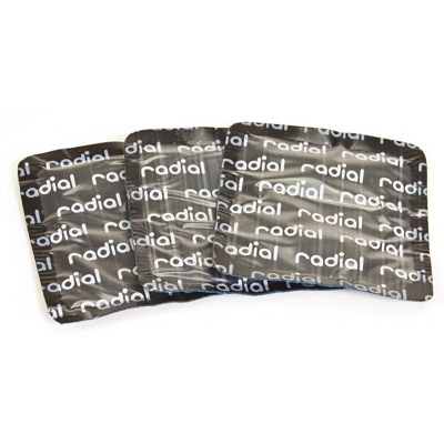Xtra Seal 3" Large Square Blue Dot Center Flow Universal Repairs are black with black vulcanizing gum on a blue poly backing. Each repair unit carries a center core of dark blue gum which flows centrifugally toward the injury, sealing small pinholes. Packaged 15 per box.