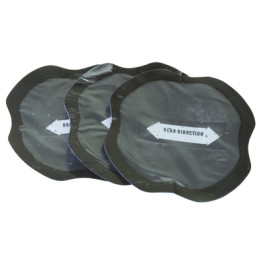 Xtra Seal 4-1/2" "AG" Bias-Ply Patch for use in agricultural bias-ply tube or tubeless tires are designed to be vulcanized chemically in any repairable area of a bias-ply tire. The repair unit is black with black vulcanizing gum on a blue poly backing. 2 ply. Packaged 10 per box.