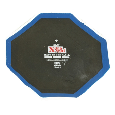 Xtra Seal 7" "BN" Bias-Ply Repairs are designed for use in puncture, reinforcing, or section repairs and can be applied in any repairable area of a tube or tubeless bias-ply tire. The BN repair unit is a molded style repair with premium blue vulcanizing gum on a white mylar backing and will vulcanize chemically, in low temperature, or in high heat curing systems when applied with our vulcanizing cement. Its fine feather edge eliminates chaffing. 3 ply. Packaged 10 per box. Ascot Part #561-11493.