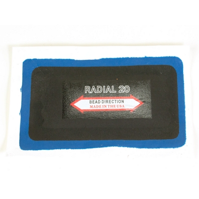 Xtra Seal 3" x 5" Radial 20 Repair (2 ply) is a unit molded style C-O-I (Center Over Injury) repair with a one-piece appearance. Each of the radially directed plies is specifically end-cut and wrapped to "float" inside the patch, preventing end cracking or break out common in competitive brands. These repairs are black with premium blue vulcanizing gum and molded on a white mylar backing. The face stock will vulcanize chemically in low temperature or high heat curing systems when applied with vulcanizing cement. Packaged 10 per box.